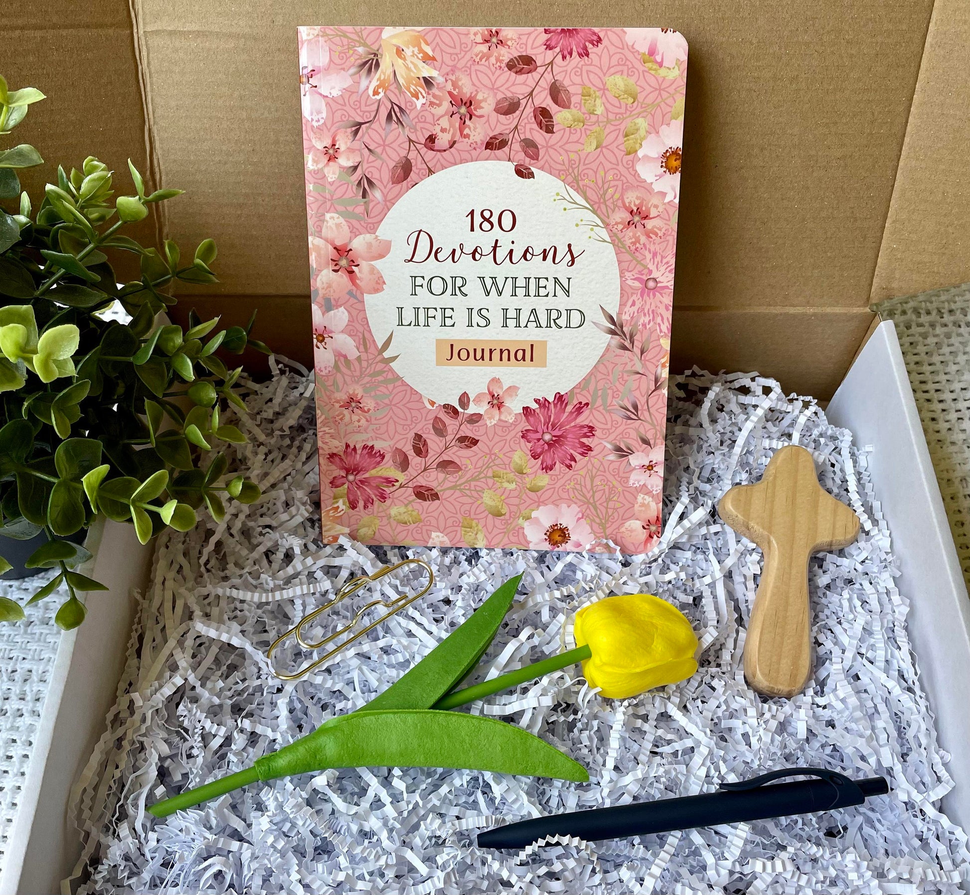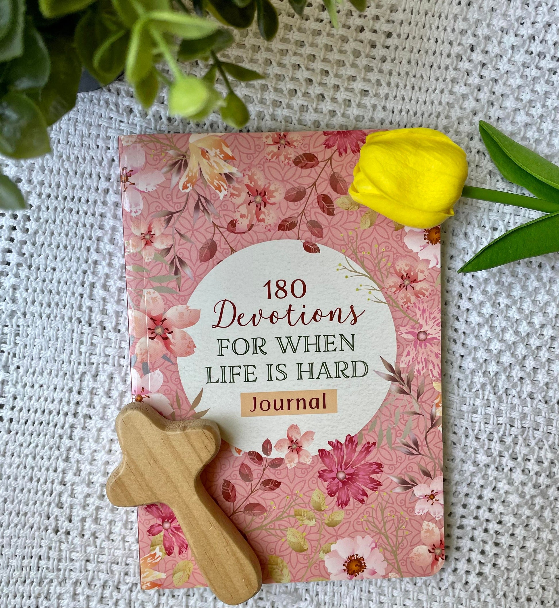 "180 Devotions for When Life Gets Hard" Devotional Journal is the perfect gift for someone you love, (including yourself) when going through a tough time. This box also includes a beautiful hand cross that you can hold while praying, or doing your daily devotions. A great reminder of God never leaving our sides, even when times are tough.
