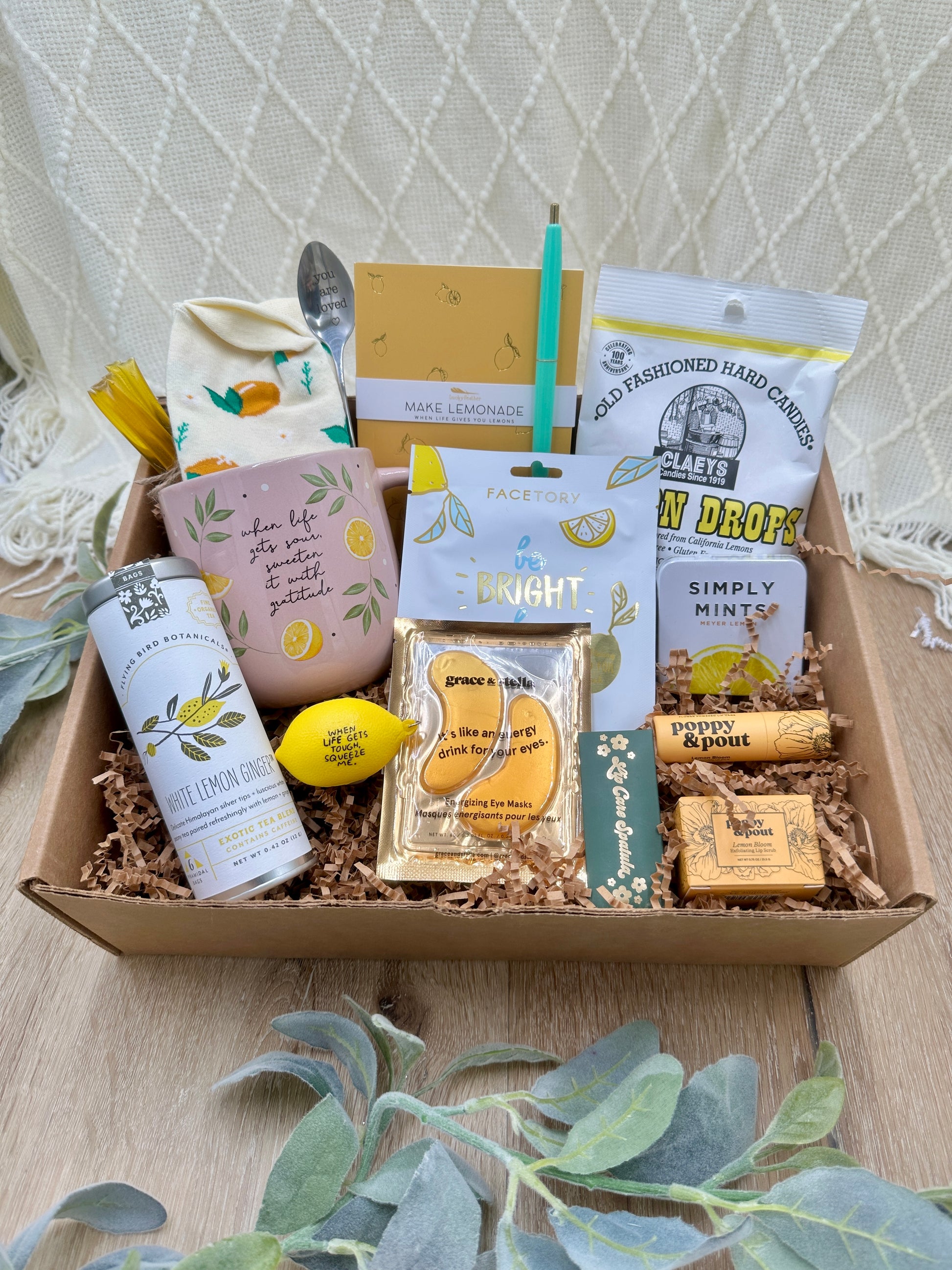 Turn a sour day into a sweet one with our Deluxe When Life Hands You Lemons Gift Set! An uplifting treat for anyone in need of a pick-me-up, this set includes everything you need to turn your day around. Perfect gift for someone recovering from an illness or injury, had a string of bad luck or someone who just loves lemons!