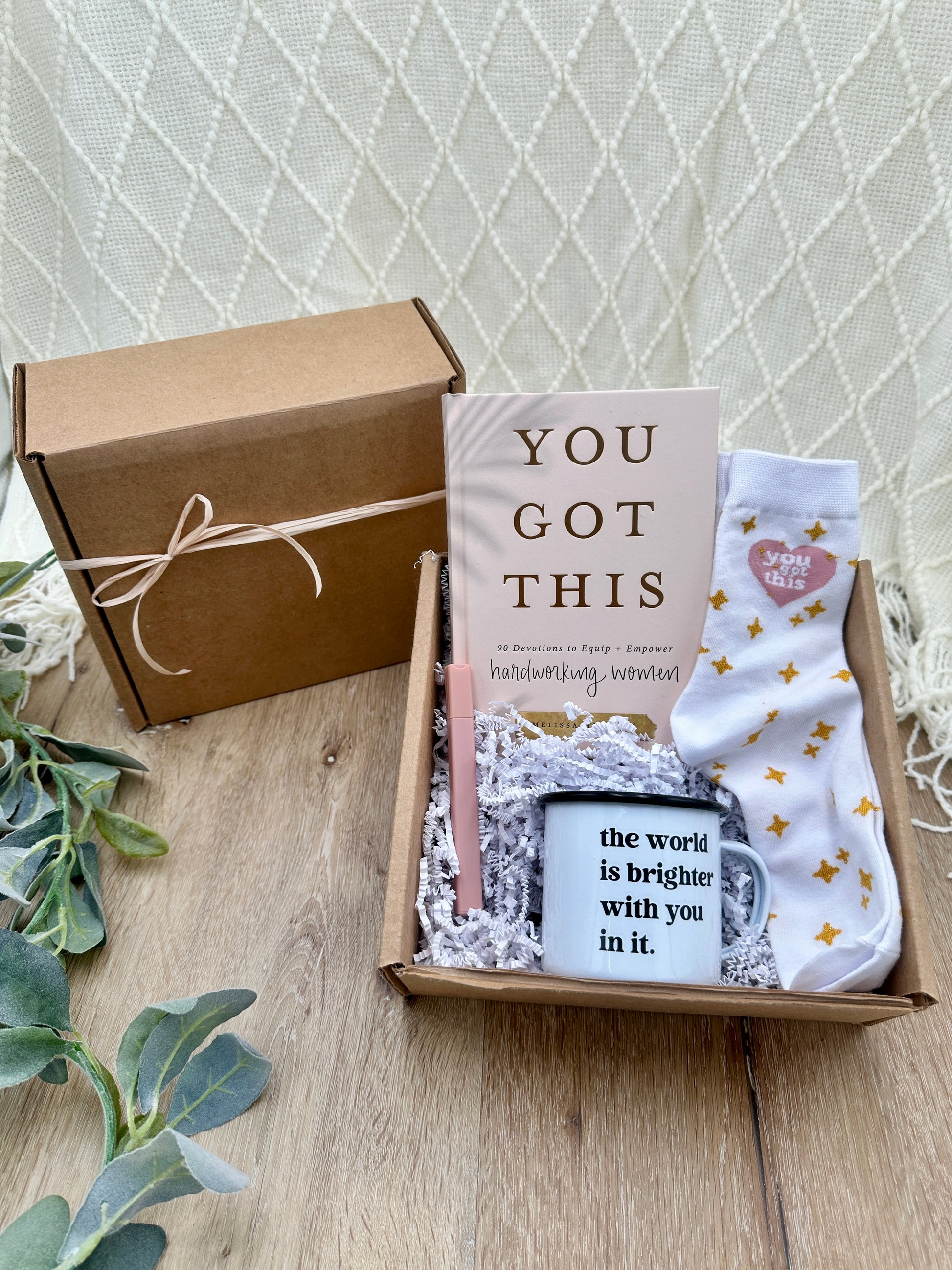 Unlock the power of positivity with the You Got This Devotional Gift Box. Encouraging you to follow your dreams and reminding you of your worth, this gift box is the perfect reminder that as a woman, you can do anything! (Just don't forget to take breaks and enjoy the journey.)